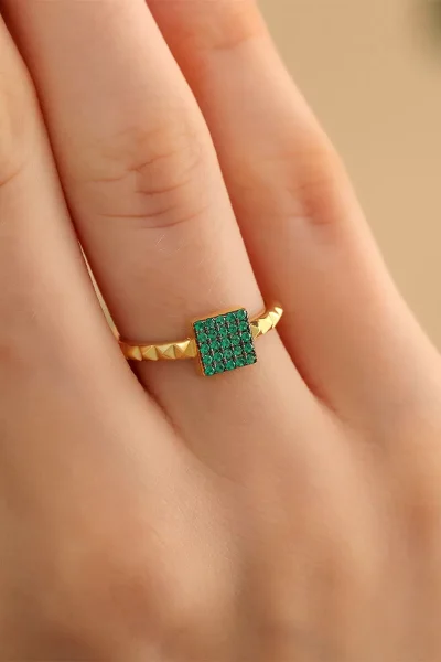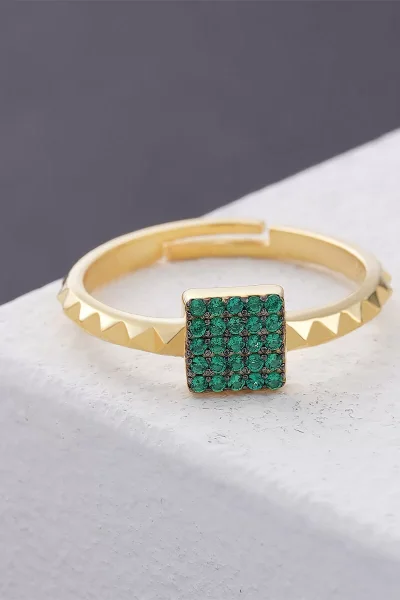 925 Ayar Zirkon Taş Kare Ayarlanabilir Gümüş Yüzük Altın Kaplama