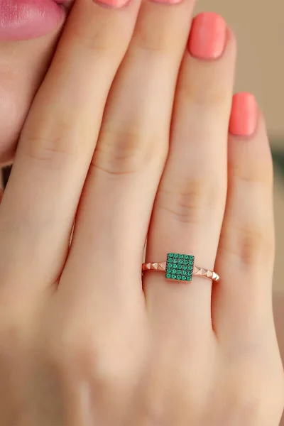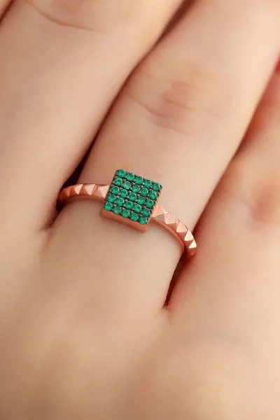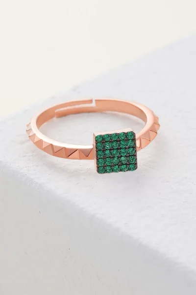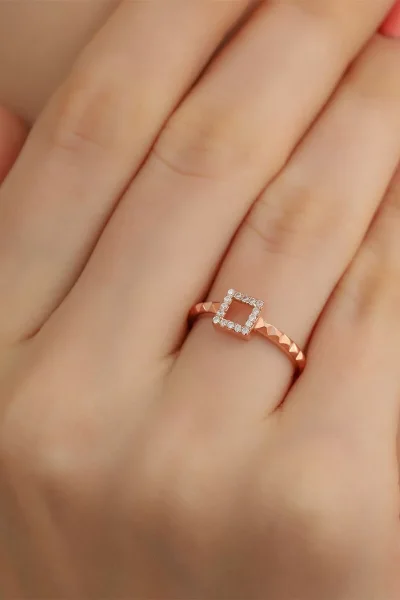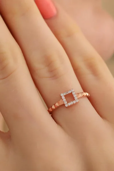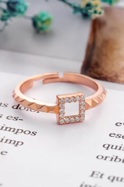925 Ayar Zirkon Taş Kare Ayarlanabilir Gümüş Yüzük Rose