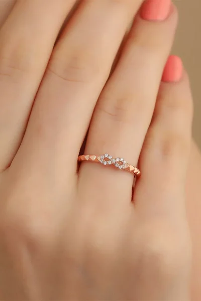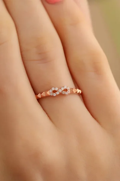 925 Ayar Zirkon Taş Sonsuzluk İşareti Ayarlanabilir Gümüş Yüzük Rose