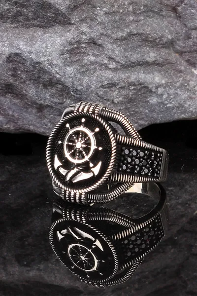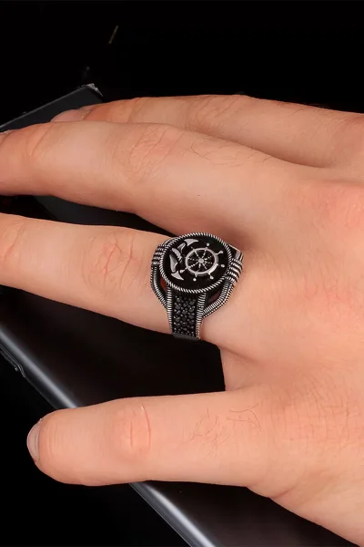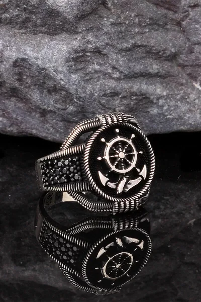 Deniz Çapası 925 Ayar Gümüş Erkek Yüzük Silver