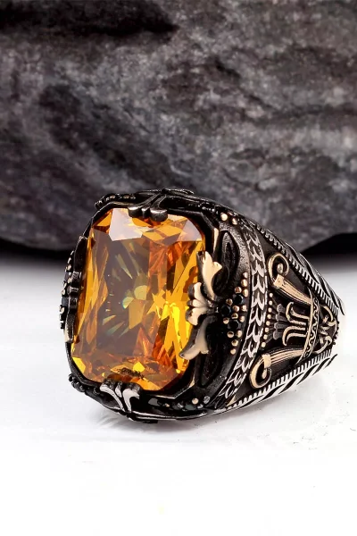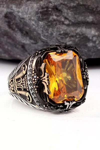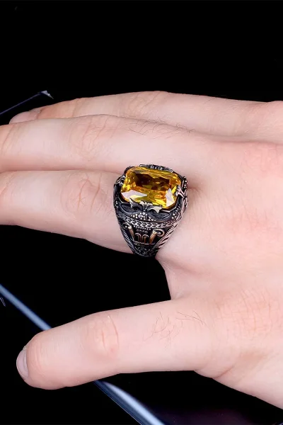 Zirkon Taşlı 925 Ayar Gümüş Erkek Yüzük Silver