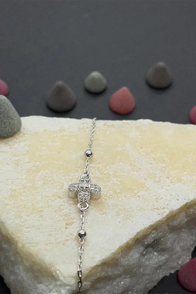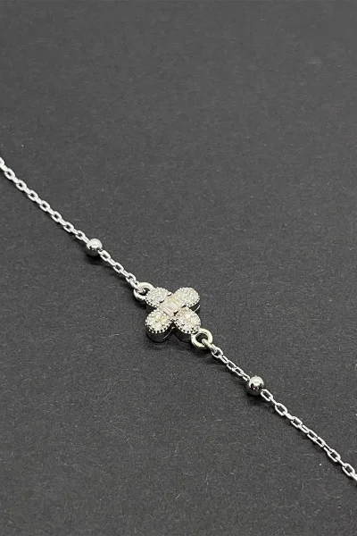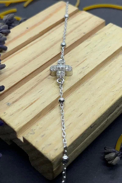 925 Ayar Gümüş Zirkon Taşı Süslemeli Top Zincirli Kadın Bileklik