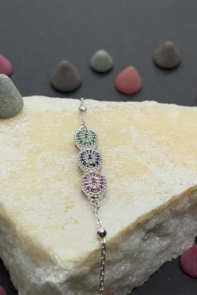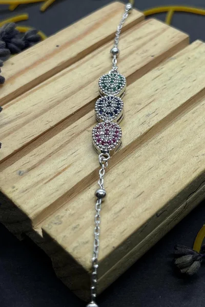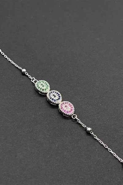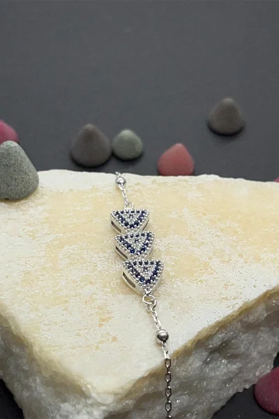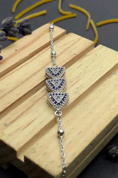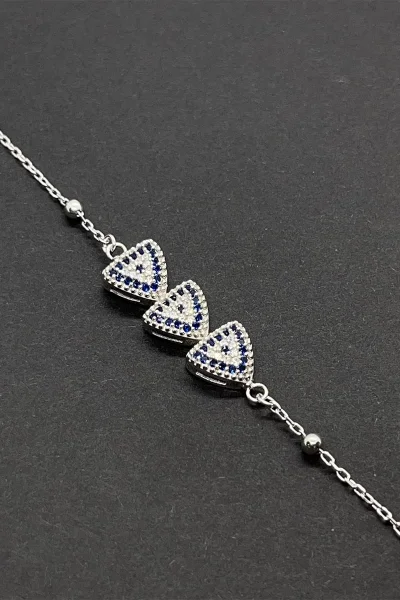 925 Ayar Gümüş Üçgen Nazar Boncuğu Modelli Zirkon Taşlı Kadın Bileklik