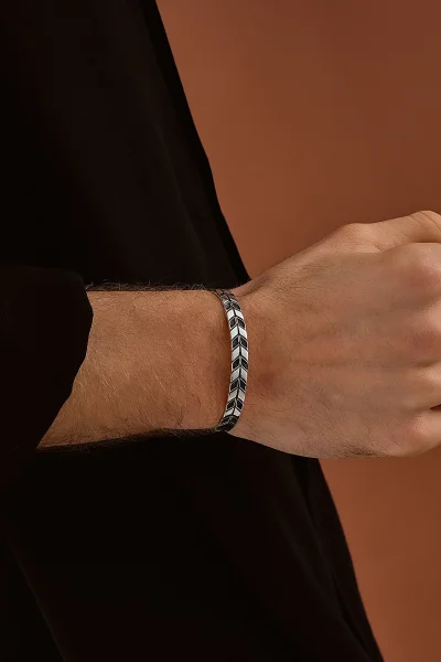 925 Ayar Gümüş Desen Motifli Erkek Bileklik