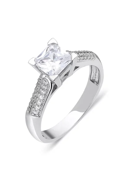 925 Ayar Gümüş Kare Zarif Tektaş Kadın Yüzüğü
