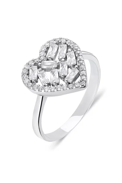 925 Ayar Gümüş Kalp Motifli Baget Taşlı Kadın Yüzüğü