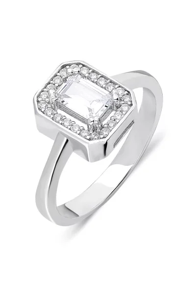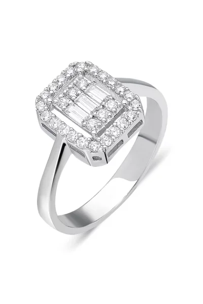 925 Ayar Gümüş Zirkon Detaylı Baget Taşlı Kadın Yüzüğü