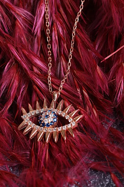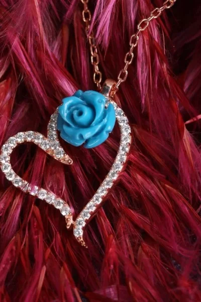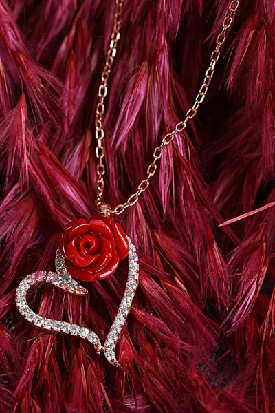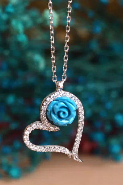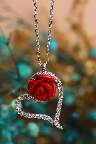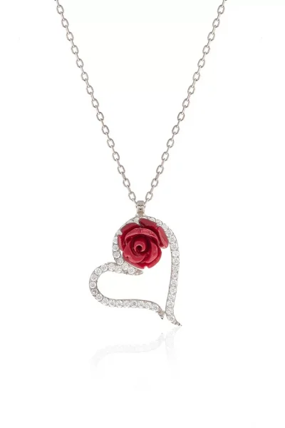 925 Ayar Gümüş Kalp ve Renkli Gül Kolye