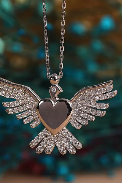 925 Ayar Gümüş Kalpli Güvercin Kolye