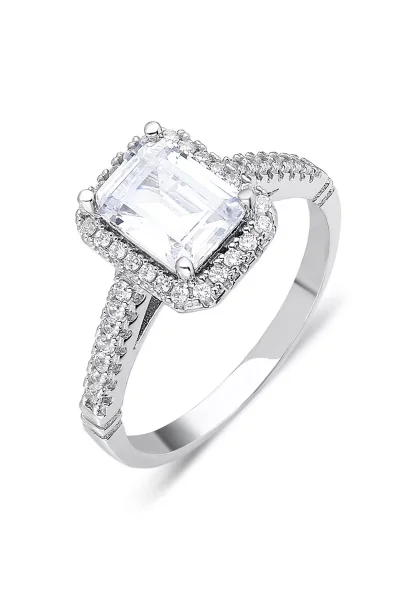 925 Ayar Gümüş Kare Zirkon Taşlı Zarif Kadın Yüzüğü