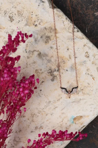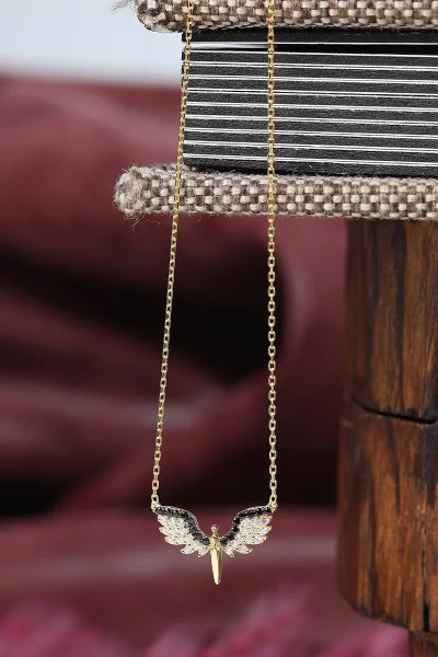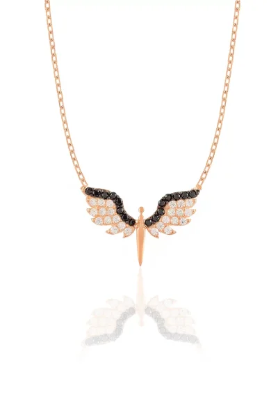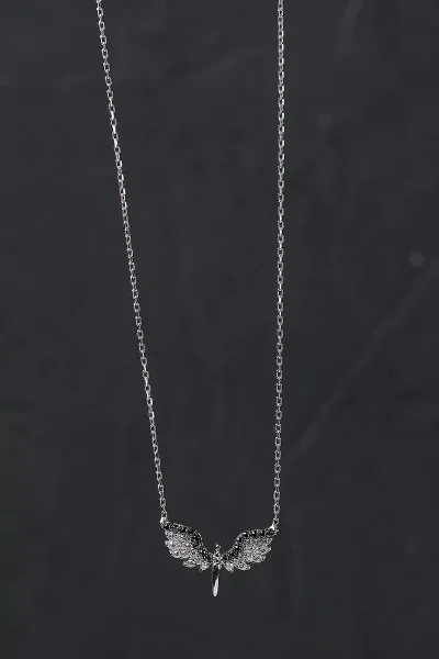 925 Ayar Gümüş Siyah Beyaz Taşlı Mini Mikail'in Kanadı Kolye