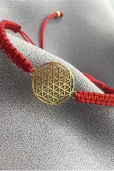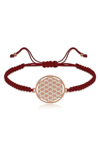 925 Ayar Gümüş Rose Renk Yaşam Çiçeği Kırmızı Makrome Kadın Bileklik
