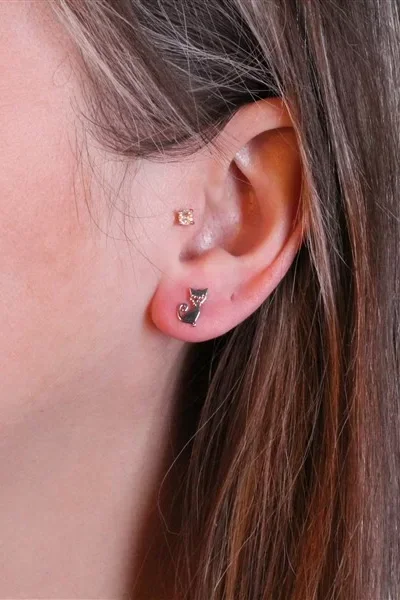925 Ayar Gümüş Zirkon Taşlı Mini Kedi Model Civili Küpe