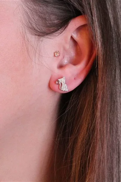 925 Ayar Gümüş Zirkon Taşlı Kedi Model Civili Küpe