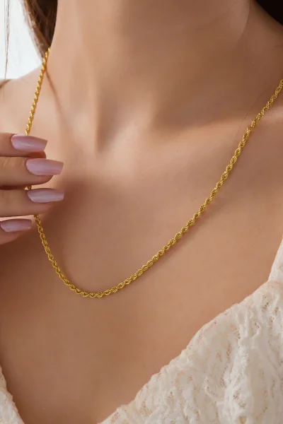925 Ayar Gümüş Altın Kaplama Burgu Zincir Kolye