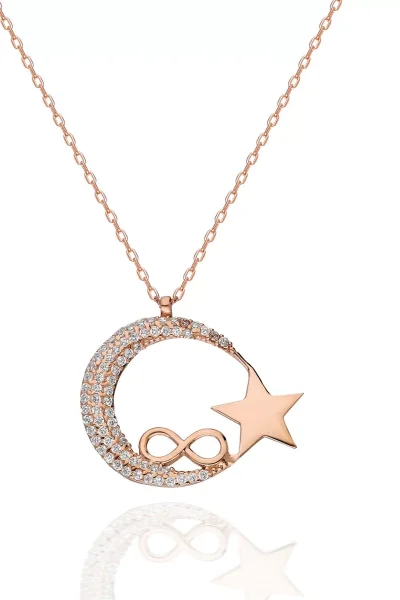 925 Ayar Gümüş Sonsuzluk Ay Yıldız Kolye