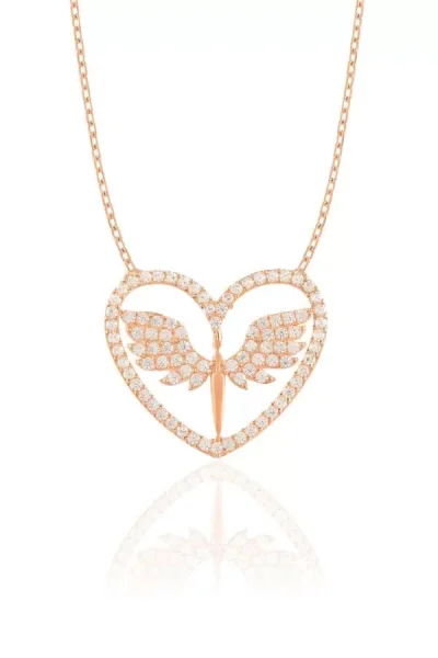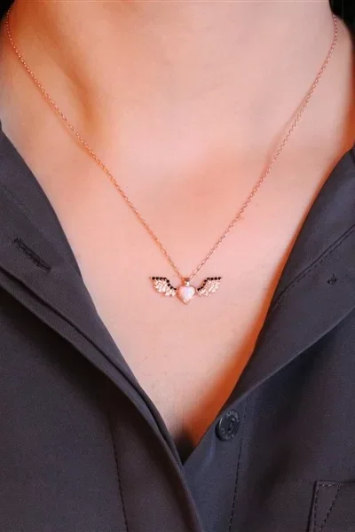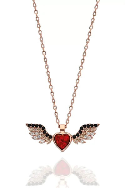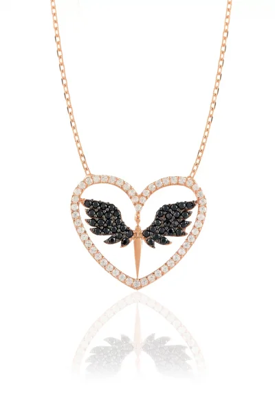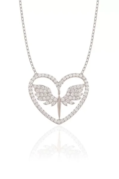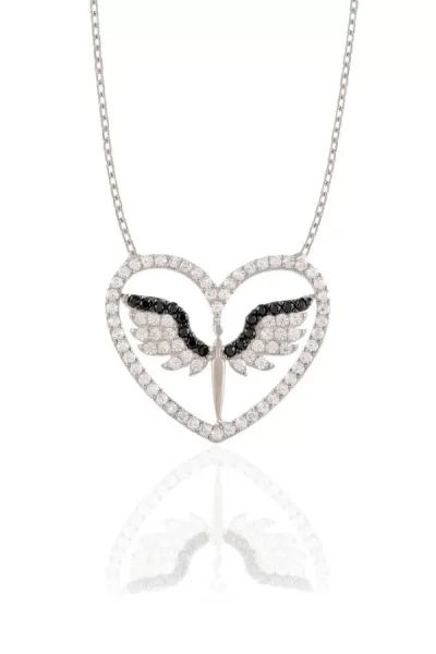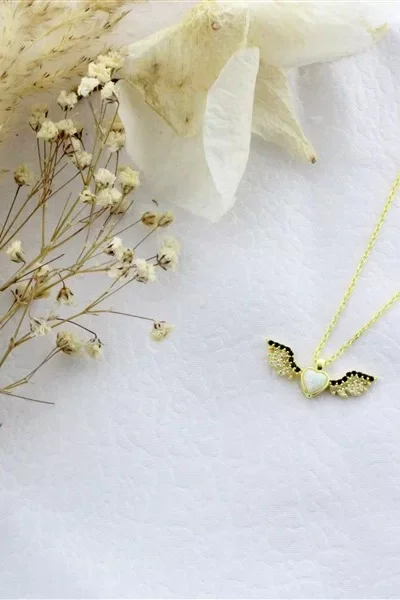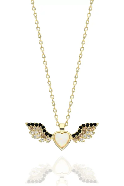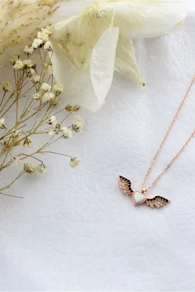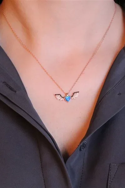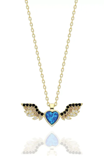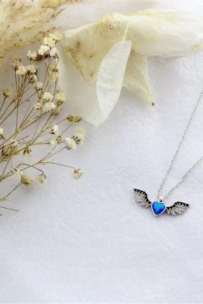 925 Ayar Gümüş Opal Taşlı Melek Kanatlı Kalpli Kolye