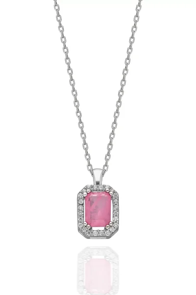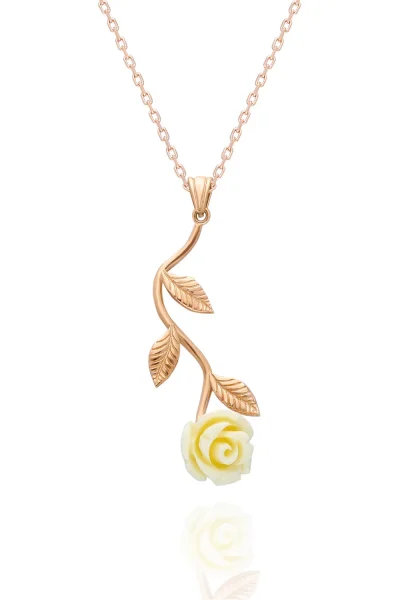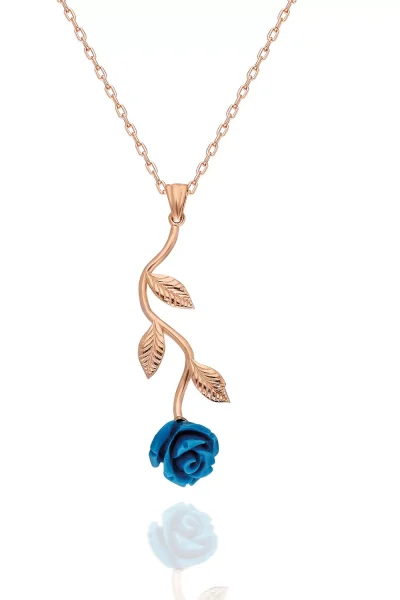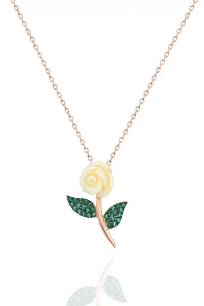 925 Ayar Gümüş Yapraklı Renkli Gül Kolye