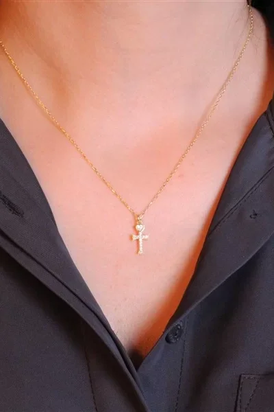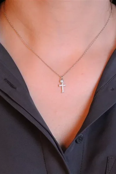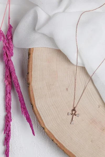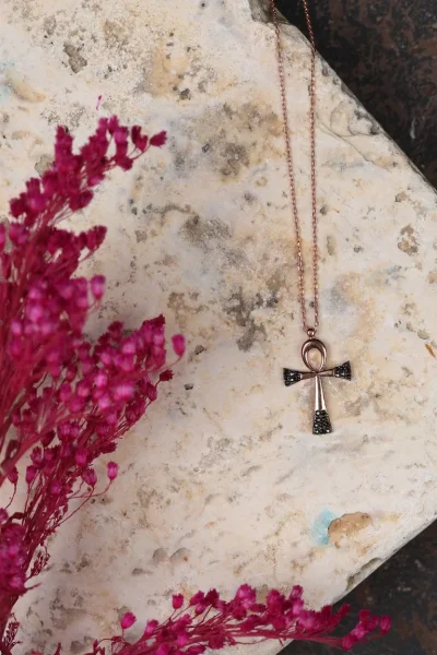925 Ayar Gümüş Zirkon Taşlı Ankh Kolye
