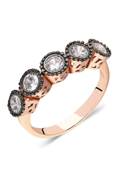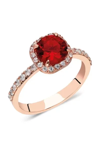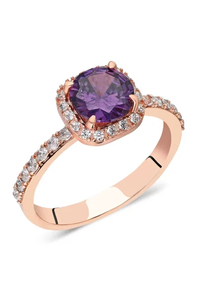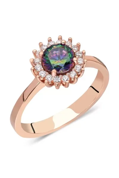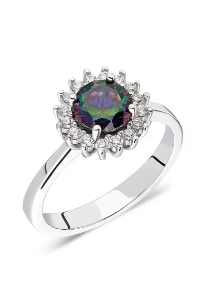 925 Ayar Gümüş Yuvarlak Kesim Motifli Taşlı Yüzük