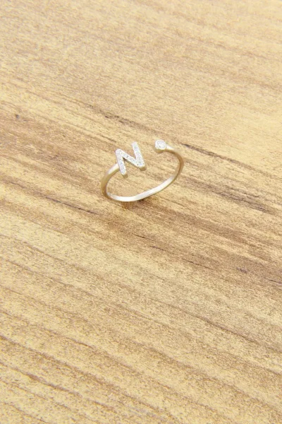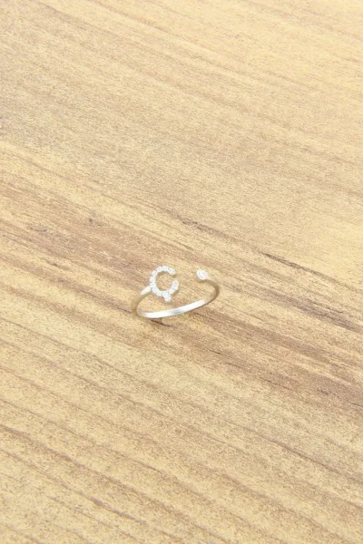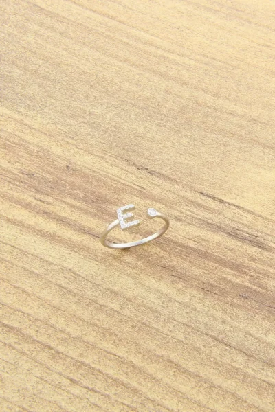 925 Ayar Gümüş Harfli Ayarlanabilir Yüzük