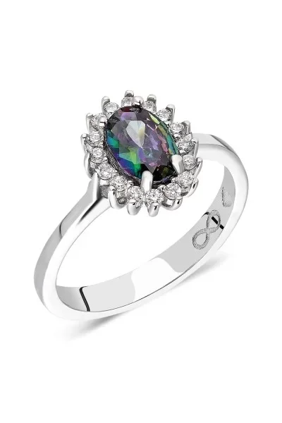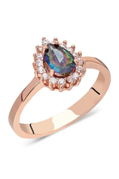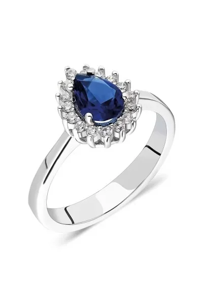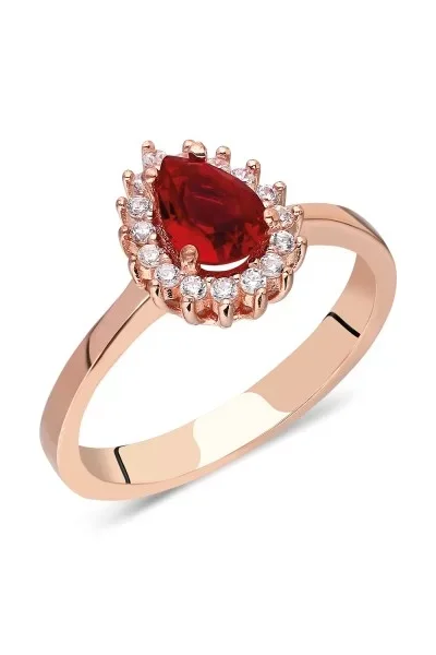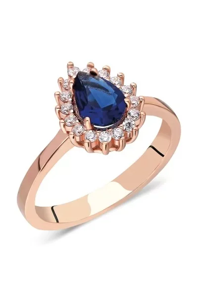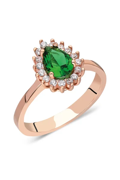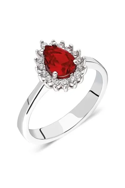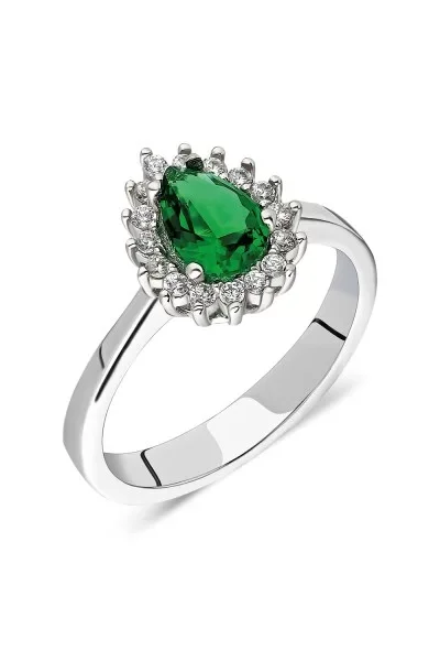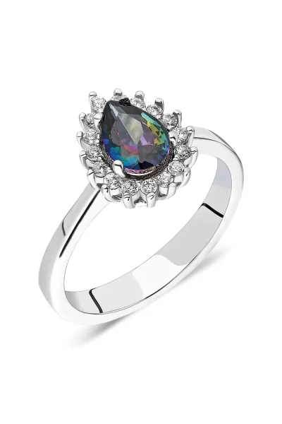 925 Ayar Gümüş Damla Motifli Taşlı Yüzük