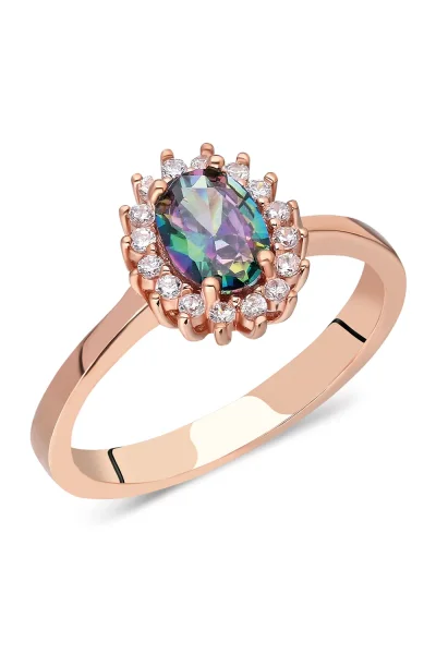 925 Ayar Gümüş Oval Kesim Motifli Taşlı Yüzük