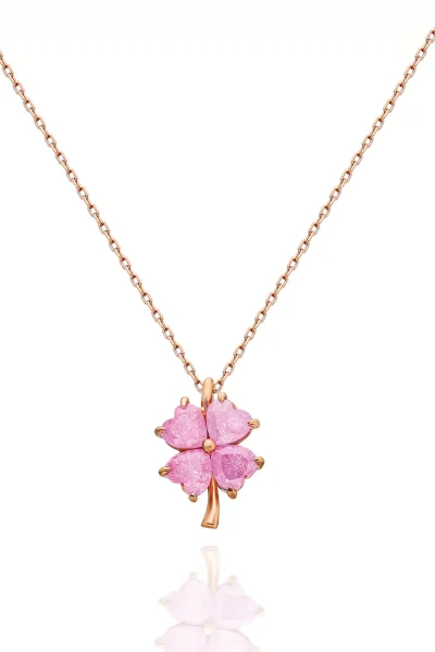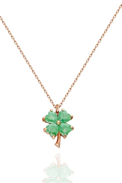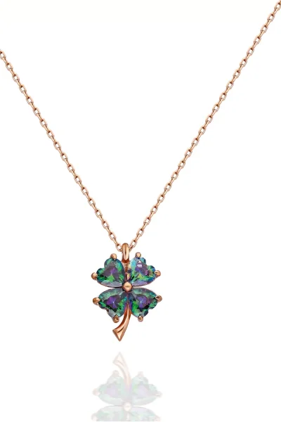 925 Ayar Gümüş Renkli Taşlı Yonca Kolye