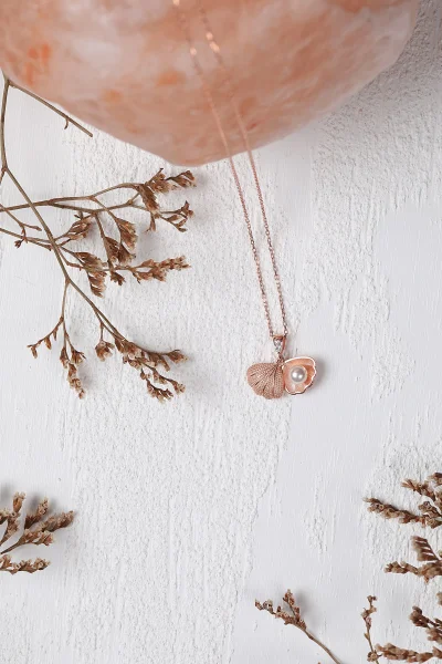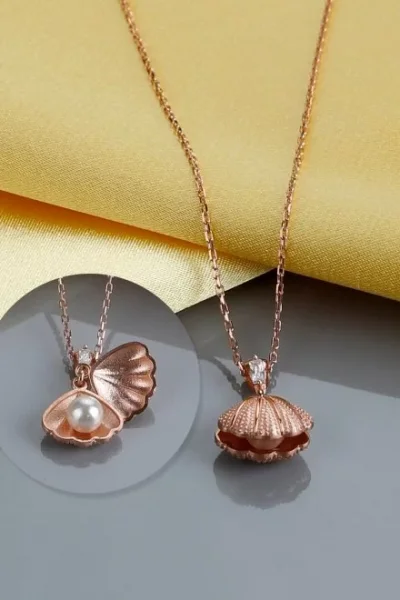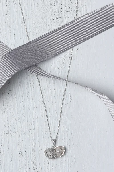 925 Ayar Gümüş İstiridye İnci Detaylı Kadın Kolye