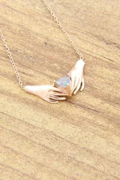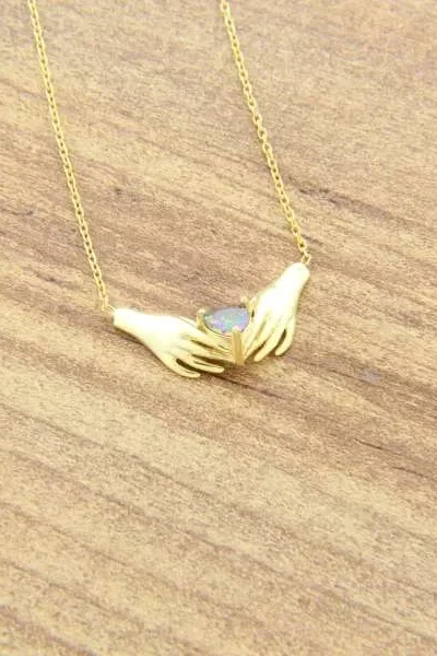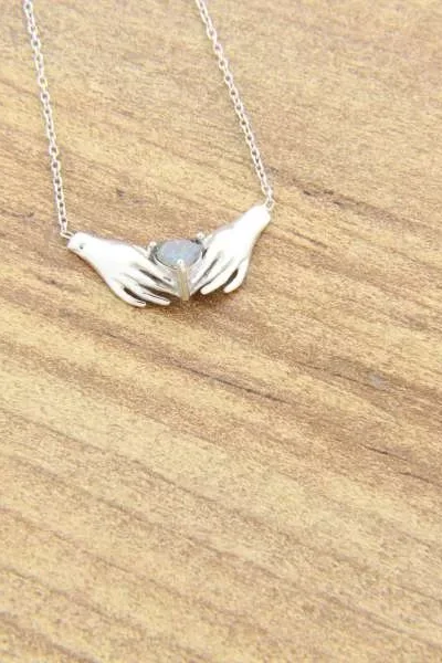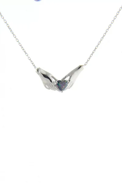 925 Ayar Gümüş Kalp Tutan El Kolye