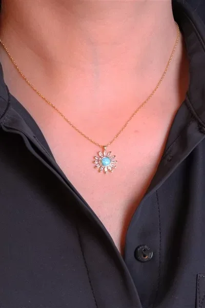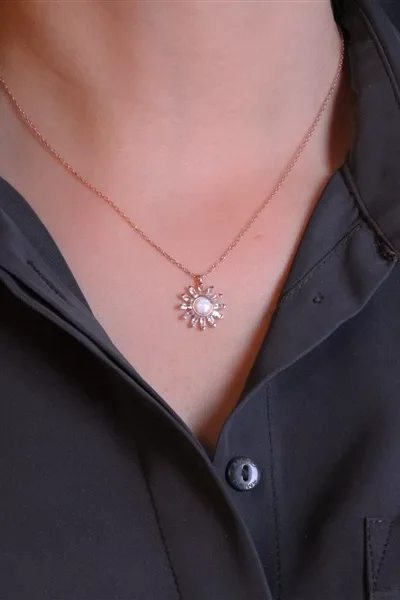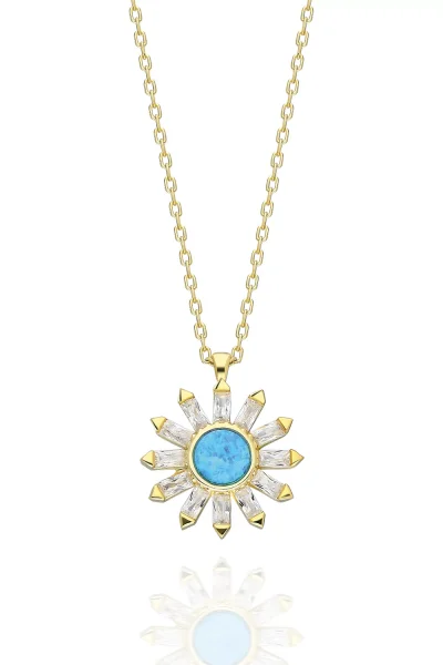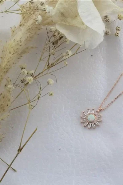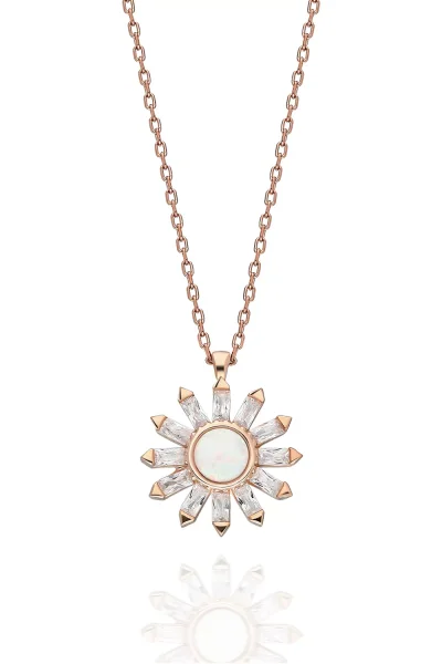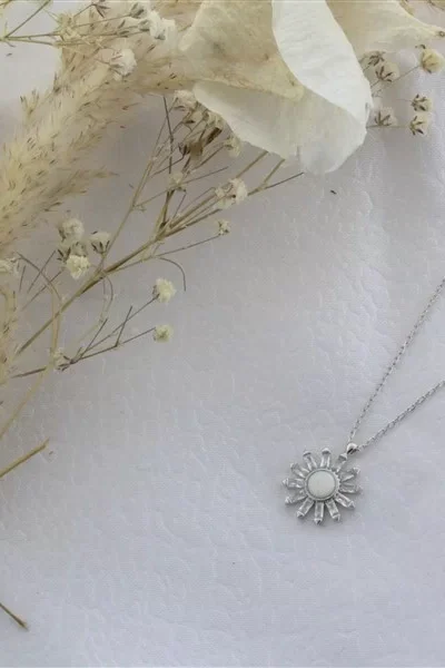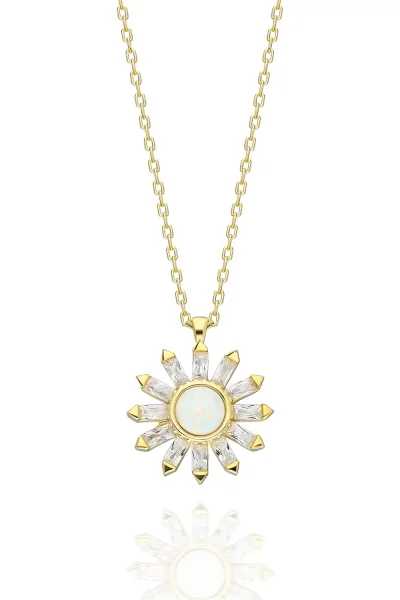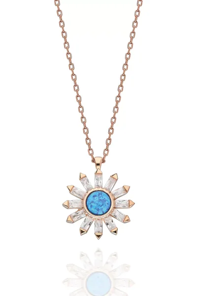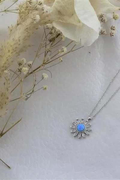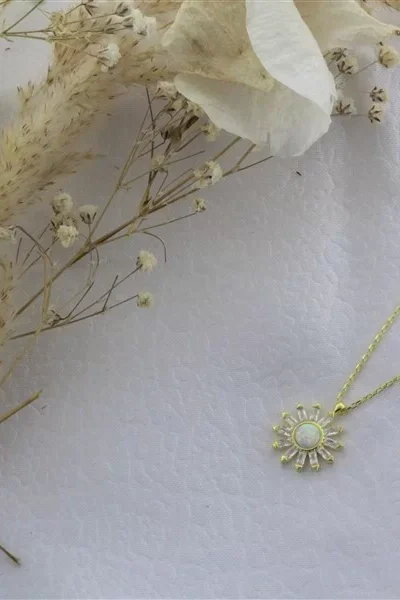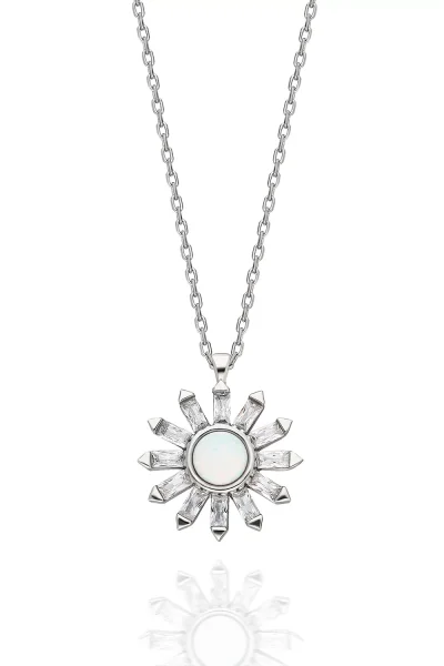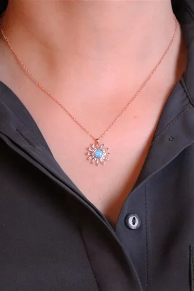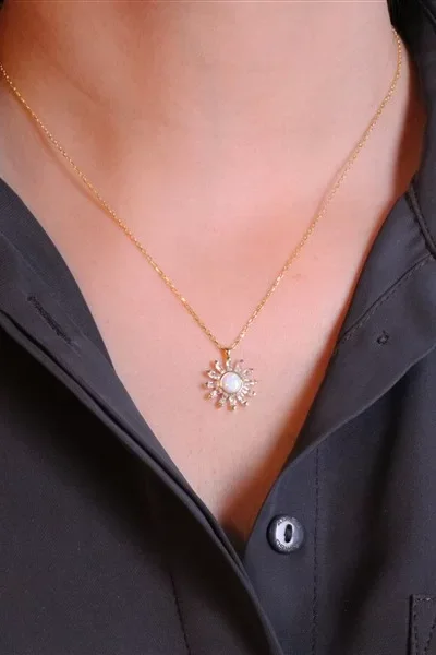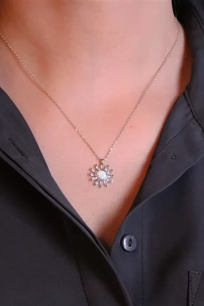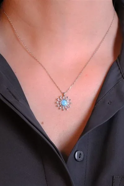 925 Ayar Gümüş Opal Taşlı Güneş Kolye