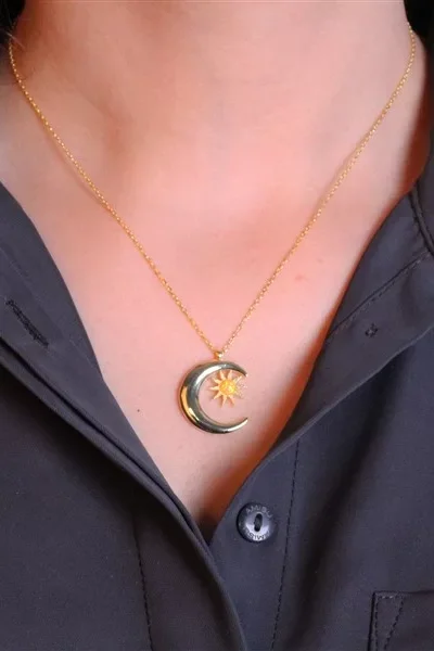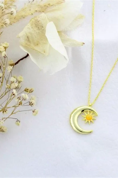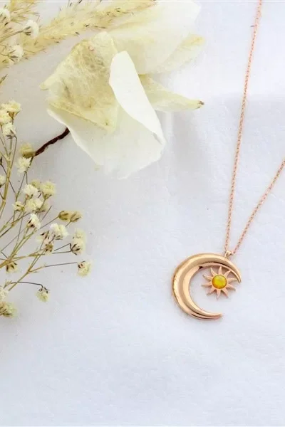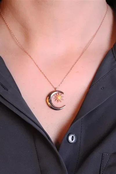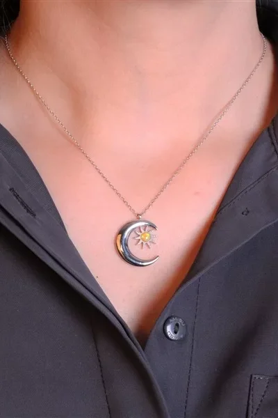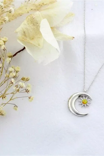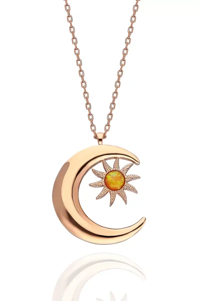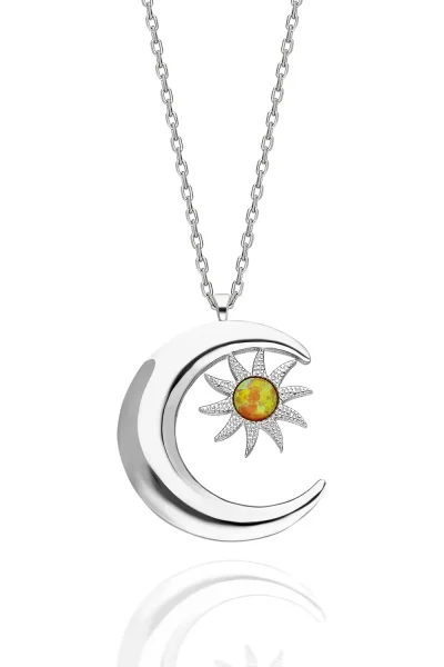 925 Ayar Gümüş Opal Taşlı Ay Ve Güneş Kolye