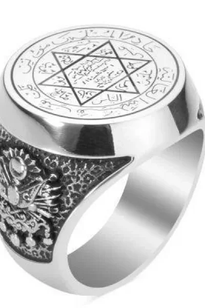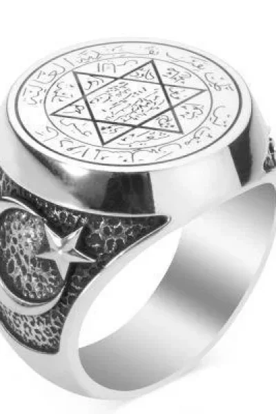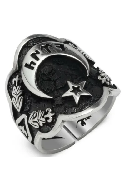 925 Ayar Gümüş Ay Yıldız ve Osmanlı Arma Motifli Mührü Süleyman Taşsız Erkek Yüzük