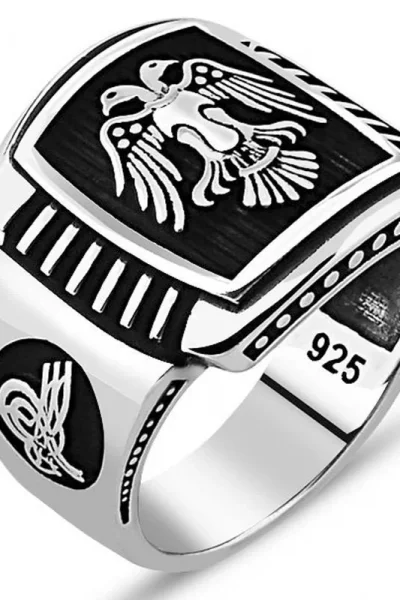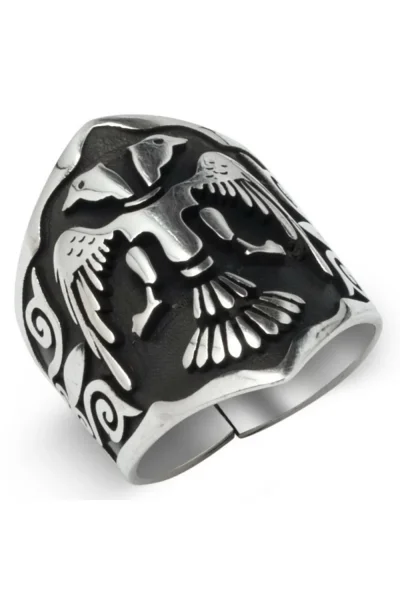 925 Ayar Gümüş Çift Başlı Kartal Erkek Yüzük