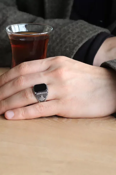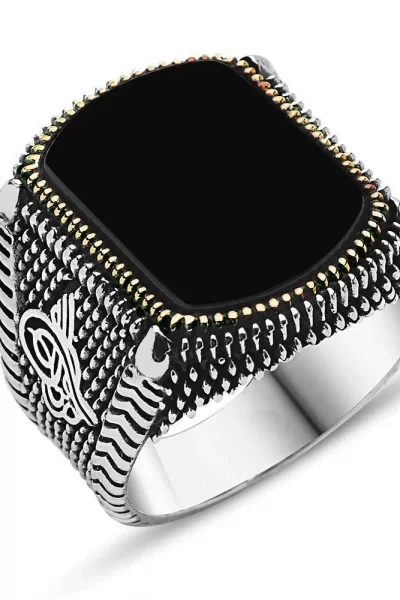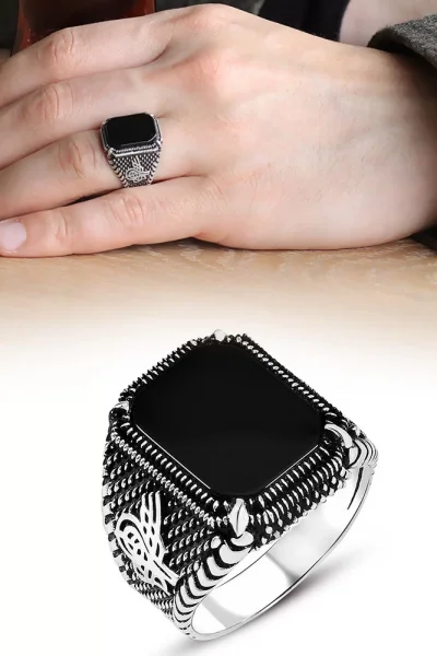 925 Ayar Gümüş Onıks Taşlı Tuğralı Erkek Yüzük