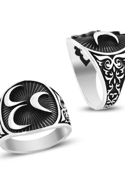 925 Ayar Gümüş Üç Hilal Oksitli Erkek Yüzük
