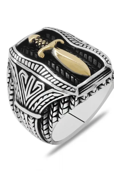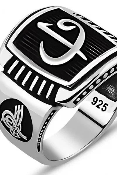 925 Ayar Gümüş Elif Vav Detaylı Erkek Yüzük