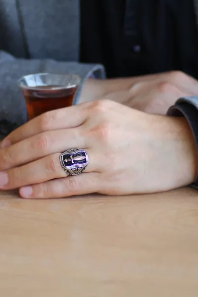925 Ayar Gümüş Ebced Yazılı Model Erkek Yüzük