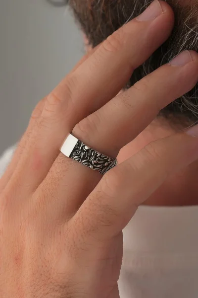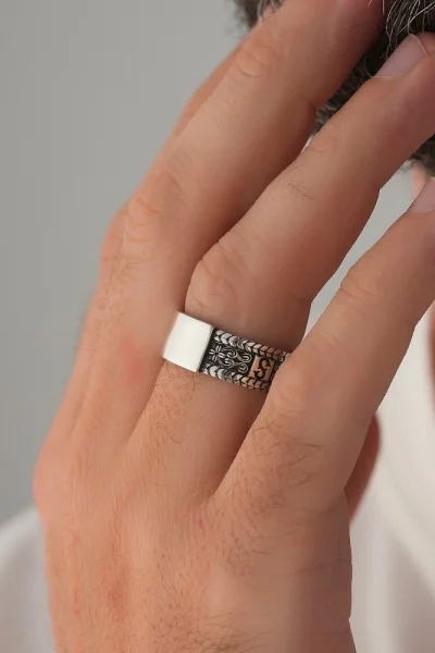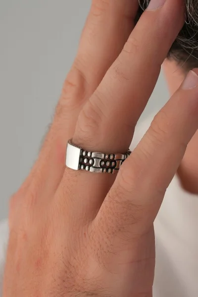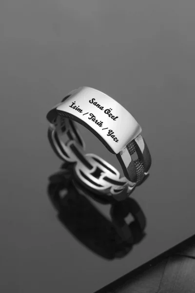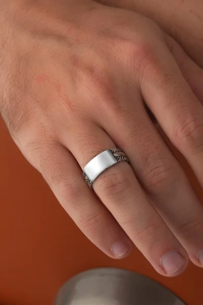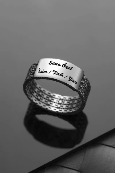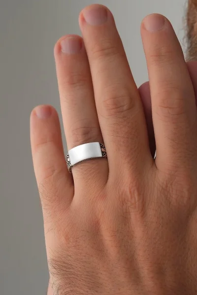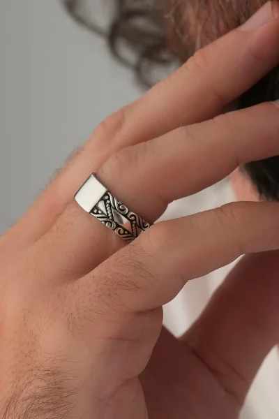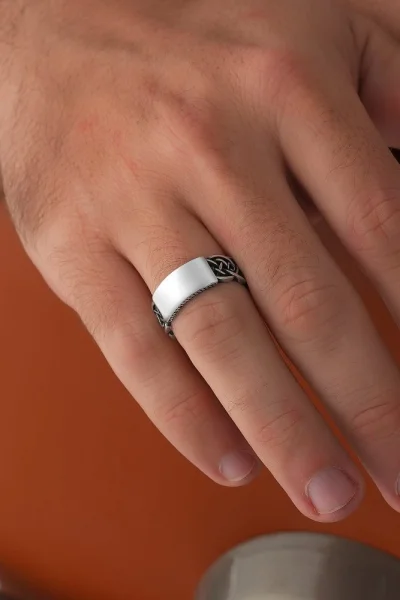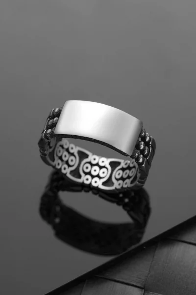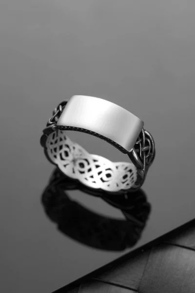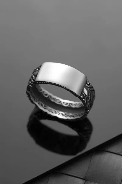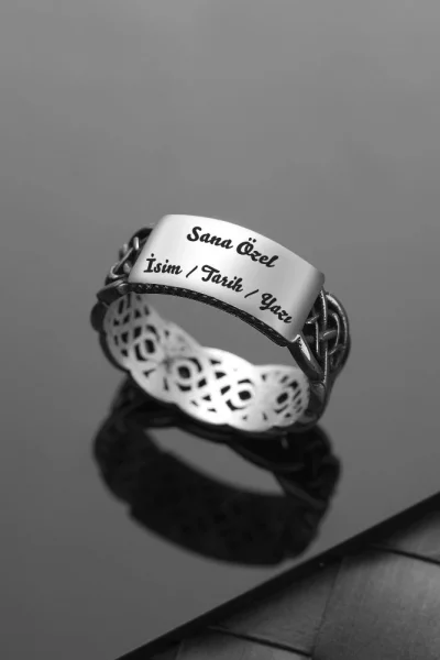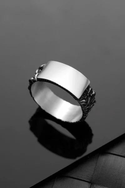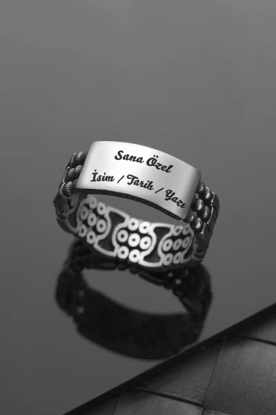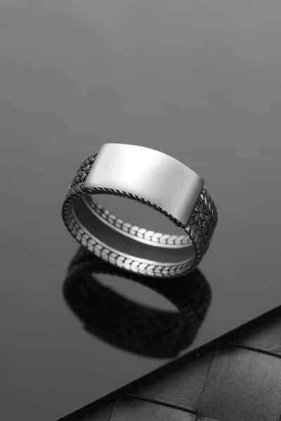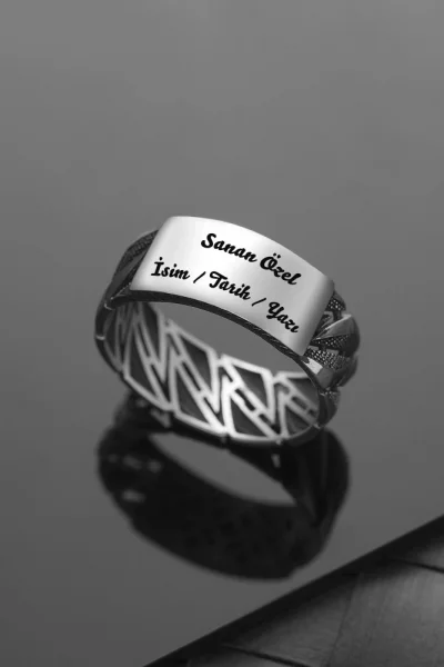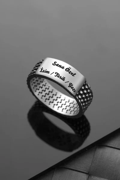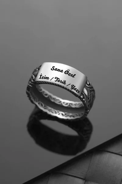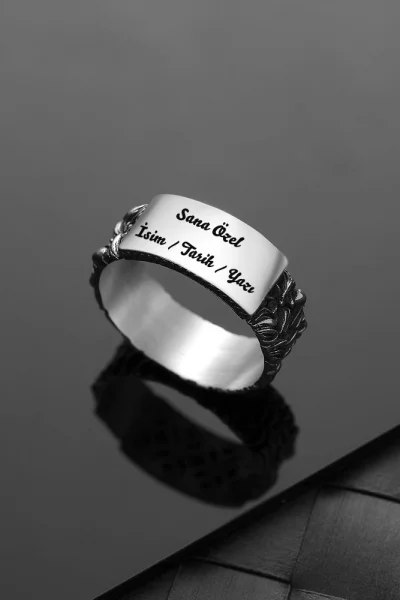 925 Ayar Gümüş Motifli Üstü Kişiselleştirilebilir Erkek Yüzüğü