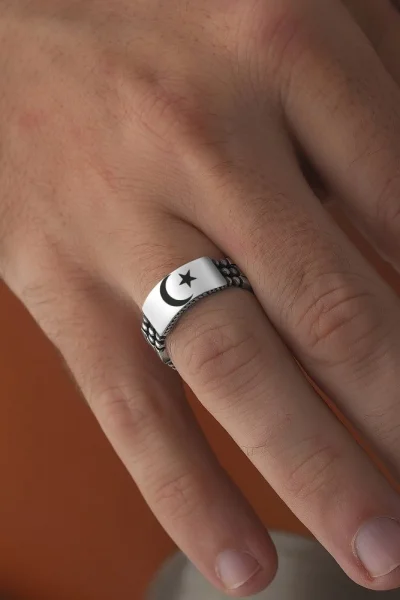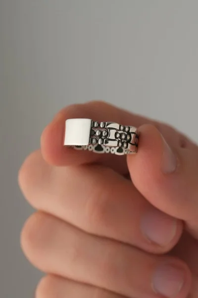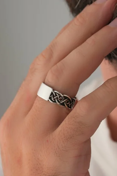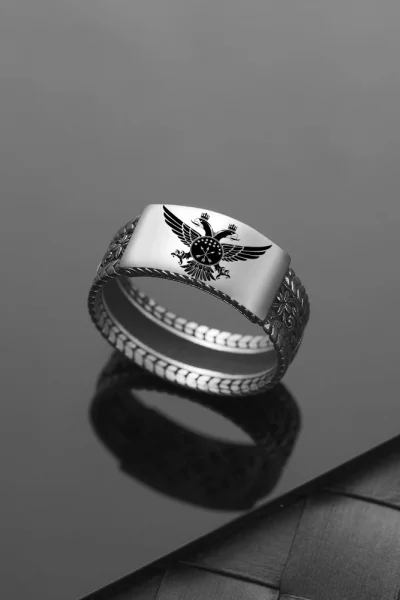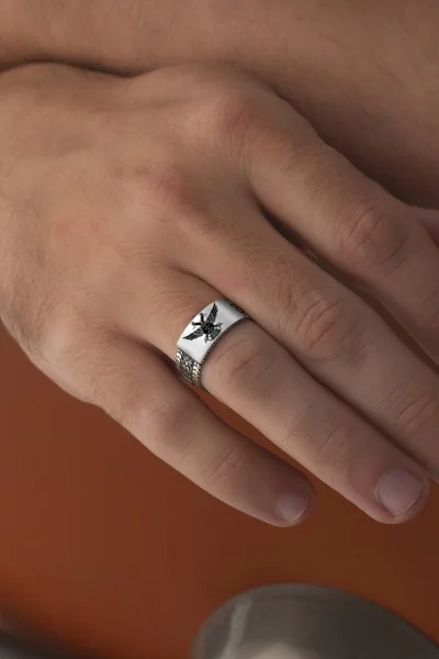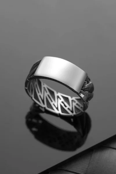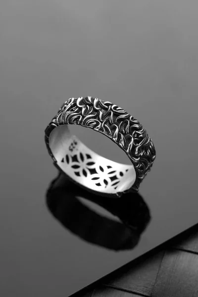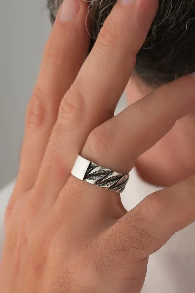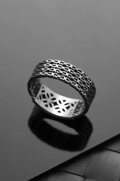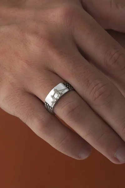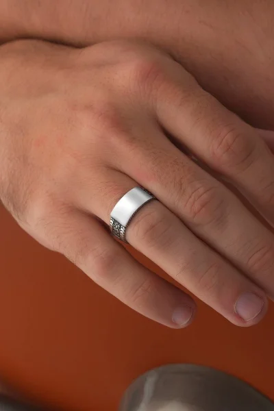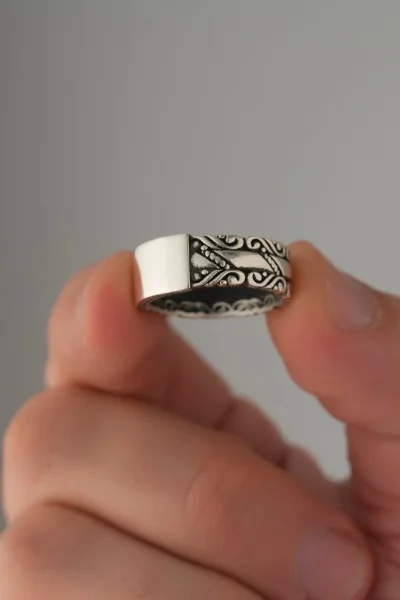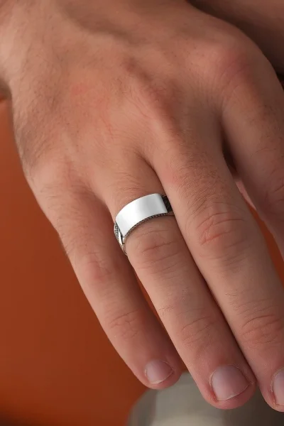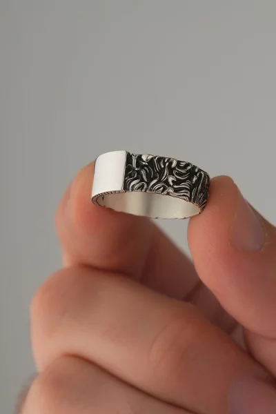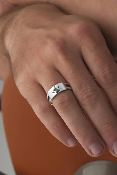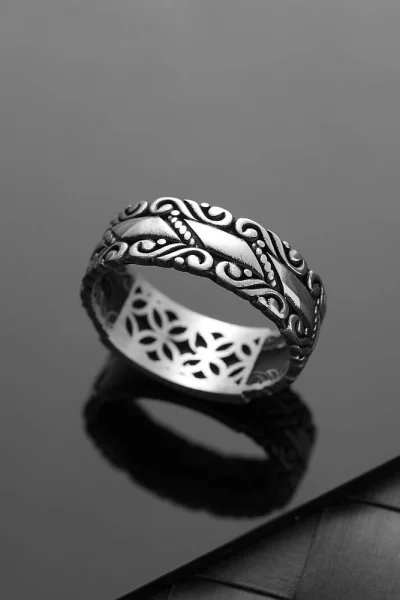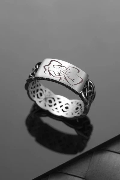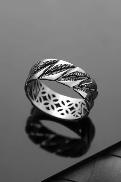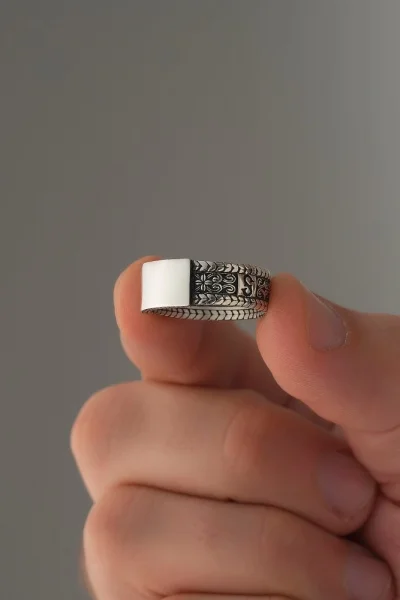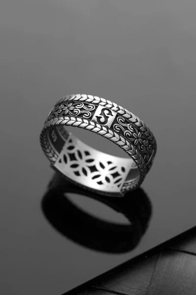 925 Ayar Gümüş Motifli Üstü Kişiselleştirilebilir Erkek Yüzüğü