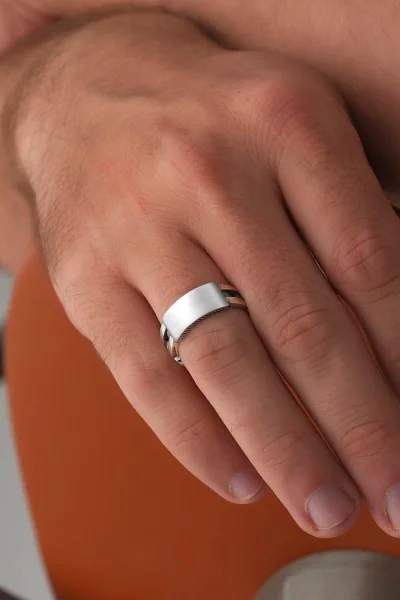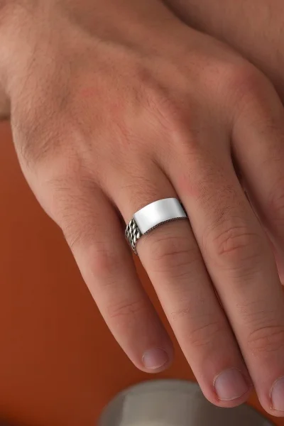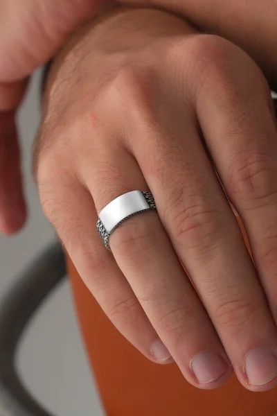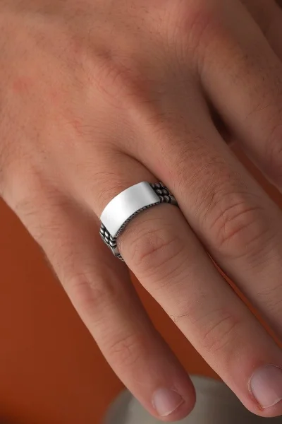925 Ayar Gümüş Zincir Motifli Üstü Kişiselleştirilebilir Erkek Yüzüğü