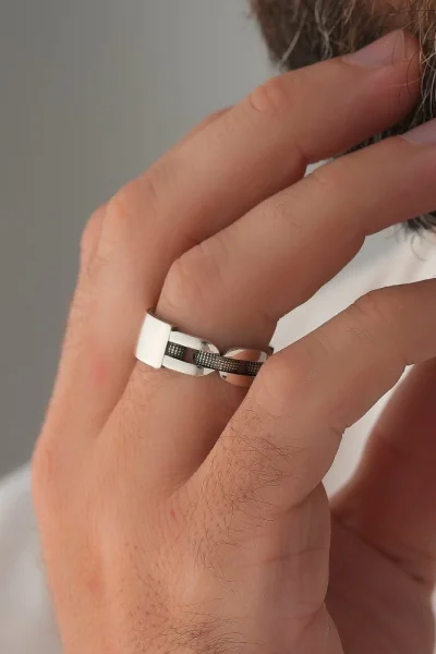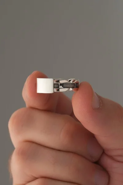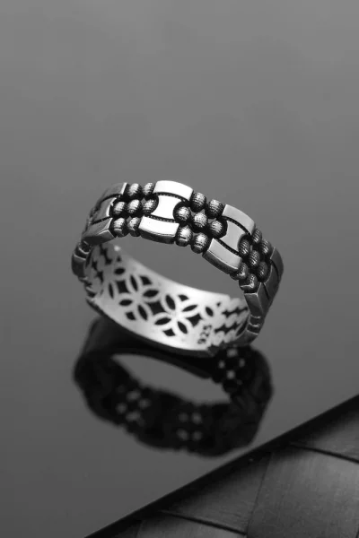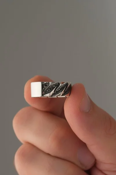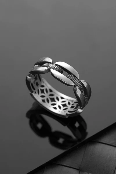925 Ayar Gümüş Forse Zincir Motifli Üstü Kişiselleştirilebilir Erkek Yüzüğü