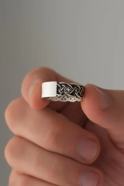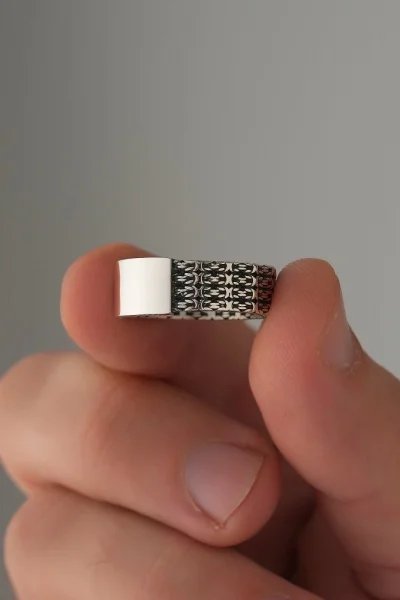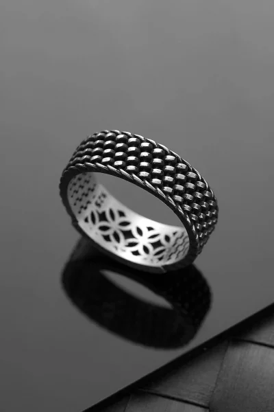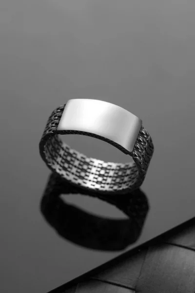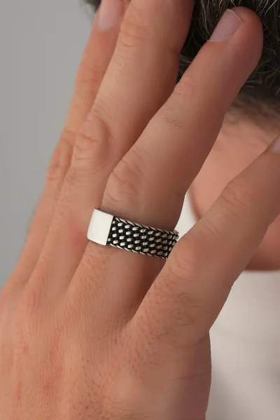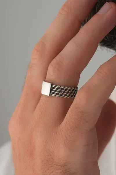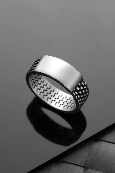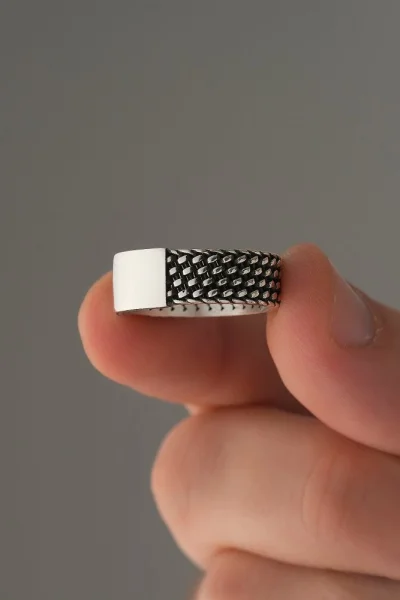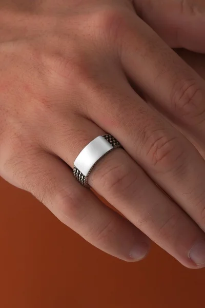 925 Ayar Gümüş Hasır Motifli Üstü Kişiselleştirilebilir Erkek Yüzüğü