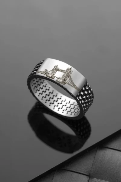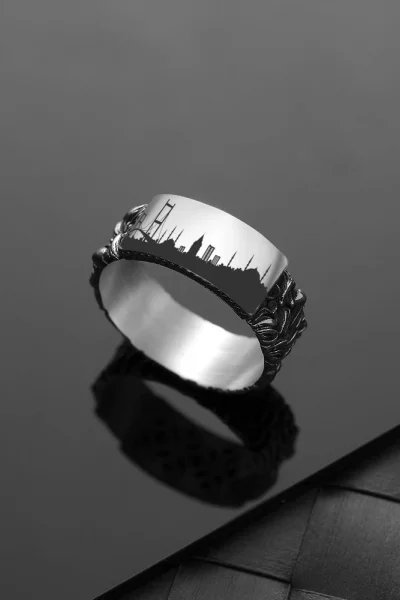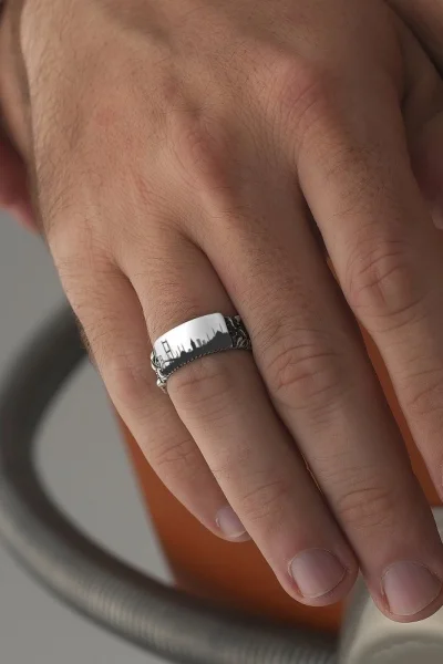 925 Ayar Gümüş Bar Motifli Üstü Kişiselleştirilebilir Erkek Yüzüğü