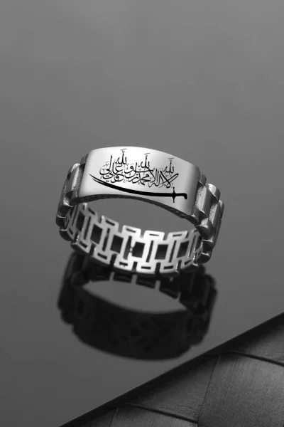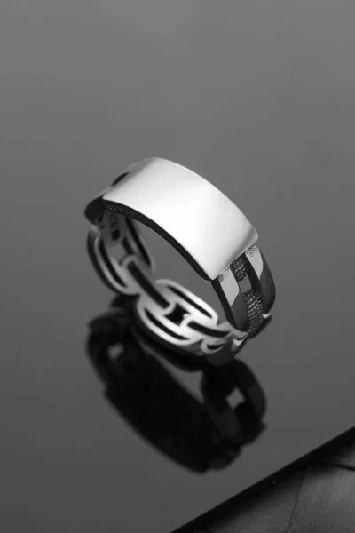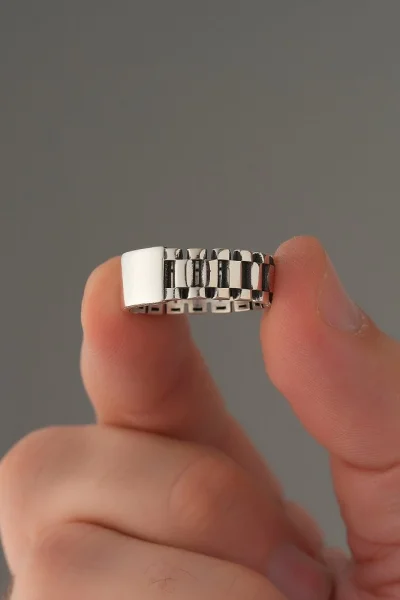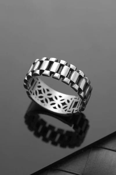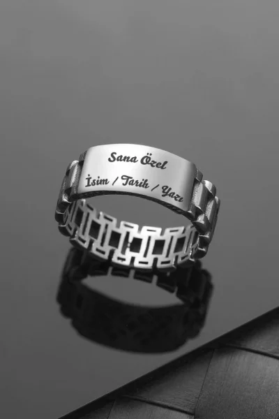 925 Ayar Gümüş Rolex Zincir Motifli Üstü Kişiselleştirilebilir Erkek Yüzüğü