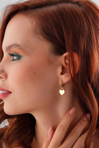 14 Ayar Altın Sallantılı Kalp Model Küpe
