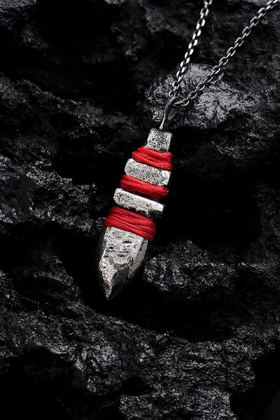 925 Ayar Gümüş Kızıldereli Savaşçıların Mızrak Ucu Unısex Kolye