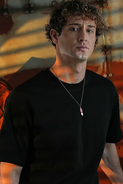 925 Ayar Gümüş Kızıldereli Savaşçıların Siyah Mızrak Ucu Unısex Kolye