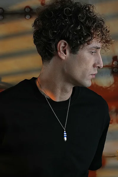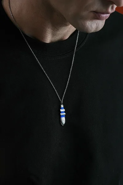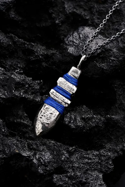 925 Ayar Gümüş Kızıldereli Savaşçıların Mavi Mızrak Ucu Unısex Kolye