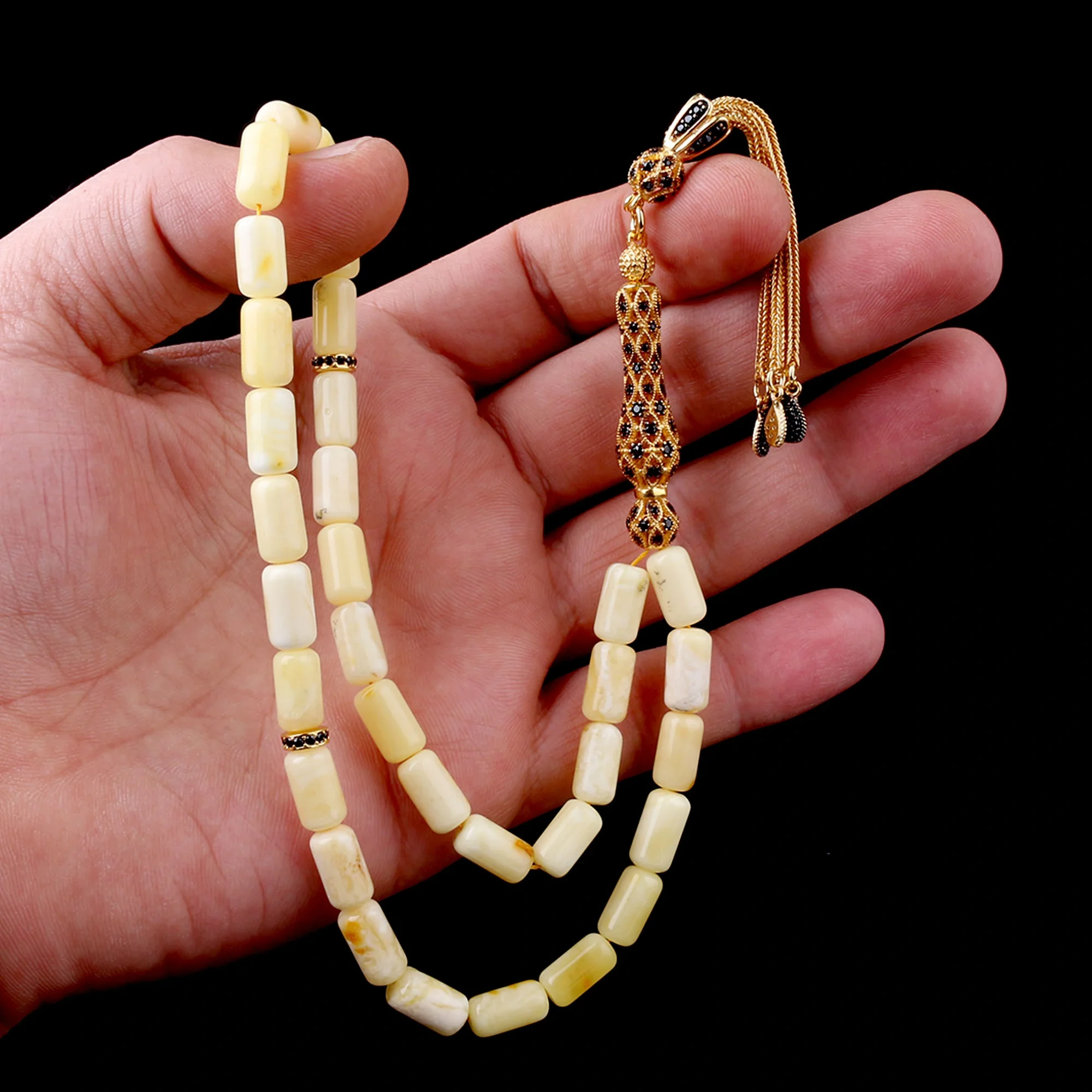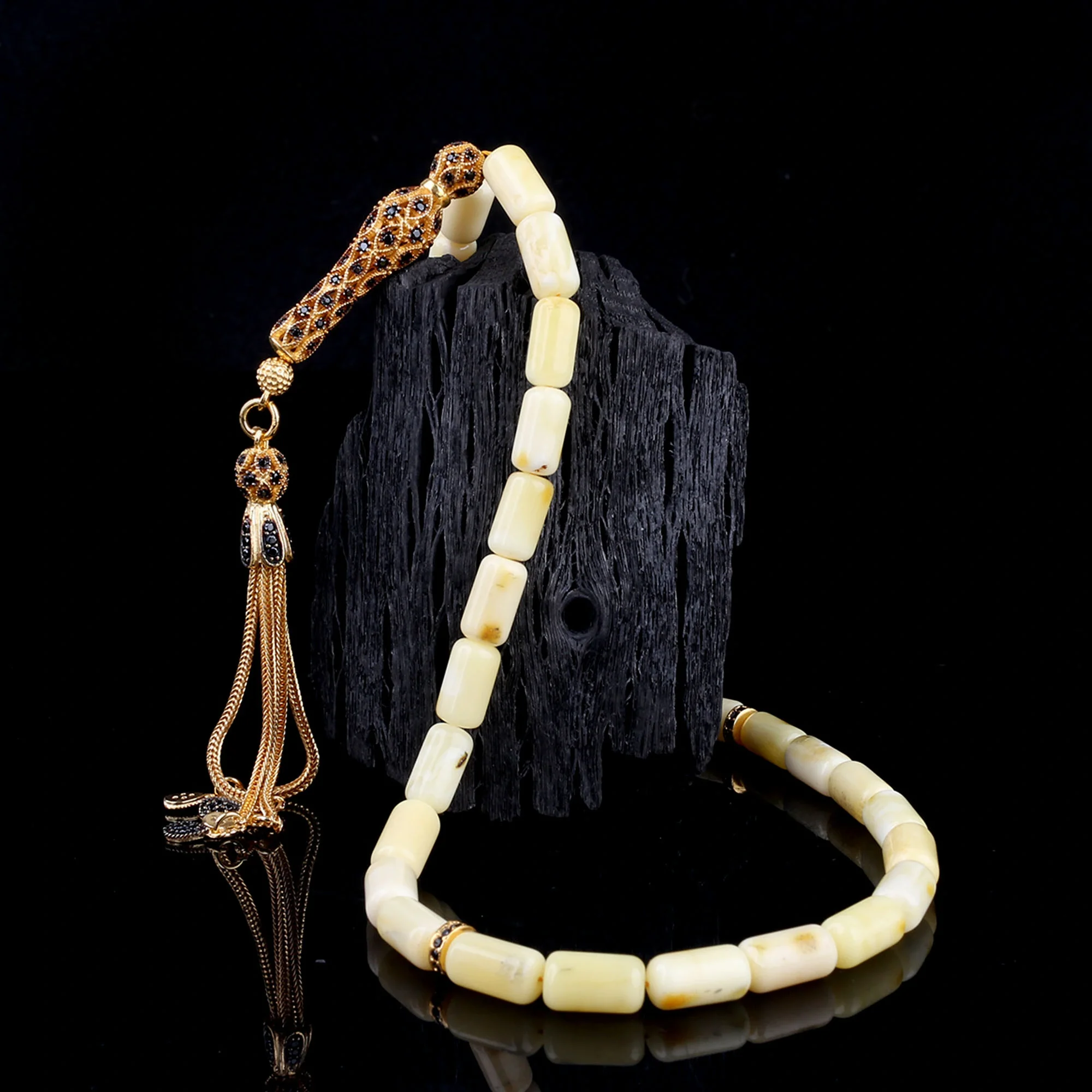 Kapsül Kesim Damla Kehribar Tesbih Zirkon Set Gümüş Püsküllü Hakkında